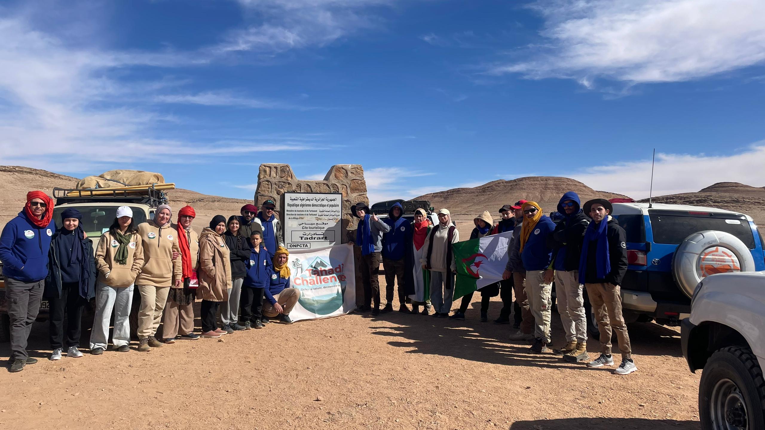 Nos Moments en Images Plongez dans nos plus beaux souvenirs et revivez les moments qui marquent notre parcours. Explorations Sahariennes Aventures dans le désertDécouvrez nos expéditions dans le Sahara, entre dunes majestueuses et oasis cachées. Désert 1Désert 2Désert 3Désert équipeCoucher de soleil 1Coucher de soleil 2OmbrePétroglyphes 1Pétroglyphes 2Pétroglyphes 3 Aventures en Montagne Sports et RandonnéesPlongez dans nos sorties en montagne, avec des images de randonnées, escalades, et sports d'hiver dans les montagnes de Kabylie, Aurès, et Djurdjura. Patrimoine Côtier Sports nautiques et PlongéeMoments capturés lors de nos activités côtières : plongée sous-marine, sports nautiques et exploration des plages méditerranéennes. Forêts et Vallées Excursions Nature et CampingImmersions en pleine nature, entre forêts luxuriantes, vallées, et rivières d’Algérie, pour des moments de calme et de découverte. Trésors Culturels et Historiques Découverte du PatrimoineTémoignages visuels de nos visites aux sites historiques et culturels, valorisant le patrimoine riche et diversifié de notre pays.